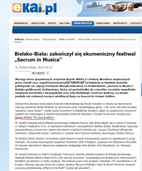 Artikel Gospelkonzert in Bielsko-Biala / Polen