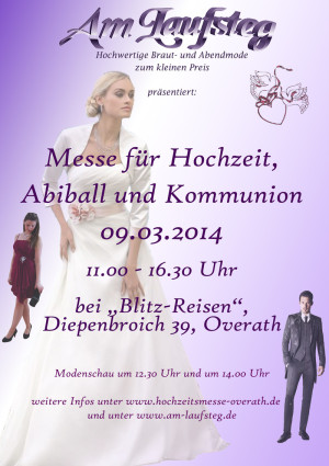 09.03.2014: Hochzeitsmesse in OverathUhrzeit: 11:00 – 16:30UhrSprechen Sie persönlich mit Boysie über Livemusik für Ihre Hochzeitsparty oder Trauung. Die Modenschauen um 12:30 Uhr und 14:00 Uhr wird Boysie White mit seinem Livegesang begleiten.