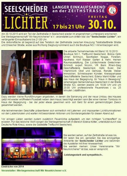 30.10.2015: Seelscheider Lichter – Livemusik im TreffpunktUhrzeit: 19:00UhrBoysie White singt im Treffpunkt in Seelscheid.