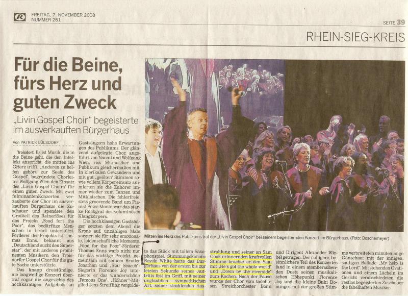 “Living Gospel Choir” begeisterte im ausverkauften Bürgerhaus
