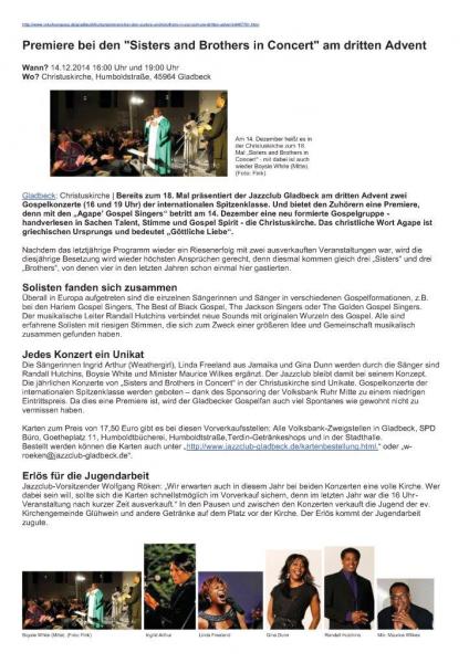 Premiere bei den “Sisters and Brothers in Concert” am dritten Advent